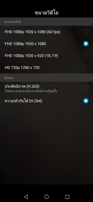 การตั้งค่าภาพนิ่งและวีดีโอกล้องหลัง