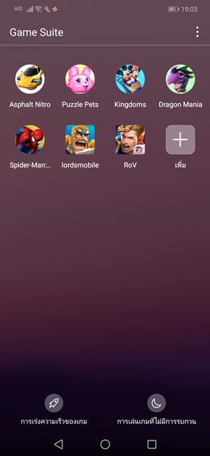 นอกจากนี้ยังมี Game Suite โหมดการทำงานระหว่างเล่นเกมมาให้บนเครื่องด้วย ซึ่งเราสามารถเลือกเร่งสปีด CPU และตัดการรบกวนระหว่างเล่นเกมได้จากในโหมดนี้ ที่น่าแปลกใจคือ เมื่อเล่นเกมยอดฮิตอย่าง ROV กลับเปิดโหมดเฟรมเรทสูงไม่ได้ ไม่แน่ใจว่าเป็นเพราะเครื่องที่ได้มาเป็นเครื่องทดสอบหรือไม่ แต่สามารถเปิดโหมด HD ได้ เล่นได้สบายๆ ลื่นๆ ภาพก็สวยอยู่เหมือนกัน ส่วนเกมอื่นๆ เล่นได้ลื่นๆ เลย
