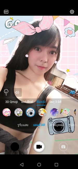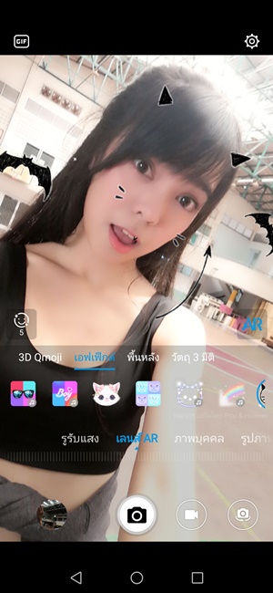 โดยทั้งสองโหมดจะเป็นแต่งเติมภาพพืนหลังด้วย AR ทำให้เราถ่ายเซลฟี่ได้สนุก มีเสียงดนตรีประกอบสามารถบันทึกเป็นไฟล์วีดีโอไว้ทำโปรไฟล์ IG หรือ FB ได้ด้วย และครั้งนี้ยังเพิ่มฟีเจอร์ 3D Qmoji ที่เป็นการนำหน้าตัวการ์ตูนต่างๆ มาขยับตามการเคลื่อนไหวของใบหน้าเรา โดยใช้เซ็นเซอร์และกล้องด้านหน้า