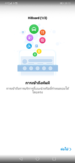 จากหน้า Home เมื่อปัดไปด้านซ้ายสุด จะพบกับหน้าเมนู Hiboard ซึ่งเป็นหน้าเมนูที่เสมือนให้เราโน้ตสิ่งต่างๆ ไว้กันลืม รวมทั้งยังสามารถเลือก Pin หรือปักหมุดไอคอนแอปฯ ทางลัดไว้ได้ด้วย เพื่อให้เราสามารถเข้าถึงหรือเรียกใช้งานแบบเร่งด่วนได้ทันที เช่น Pin การนำทางกลับบ้านผ่าน Google Maps