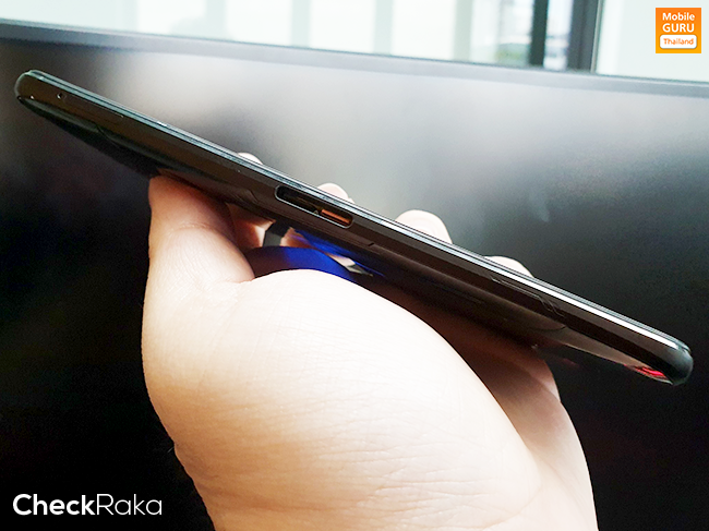 ด้านซ้ายของตัวเครื่อง มีช่องถาดสำหรับใส่ซิมการ์ดแบบ Dual SIM, พอร์ตเชื่อมต่อ USB-C ด้านข้างตัวเครื่อง