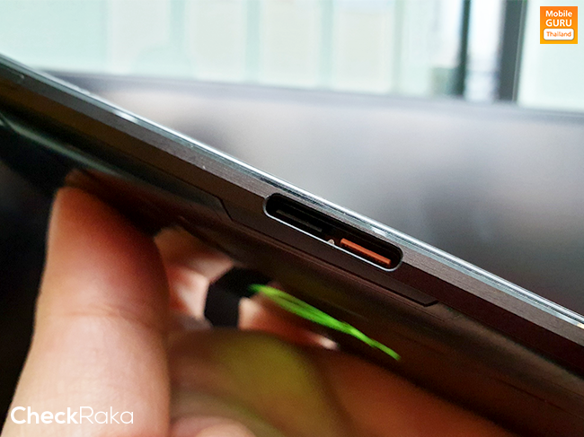 ซึ่งทาง ASUS เรียกพอร์ต 48 Pin สำหรับใช้งานร่วมกับอุปกรณ์เสริมเช่น AeroActive Cooler และบริเวณด้านล่างจะมีเซ็นเซอร์ Air Trigger 1 ตำแหน่ง