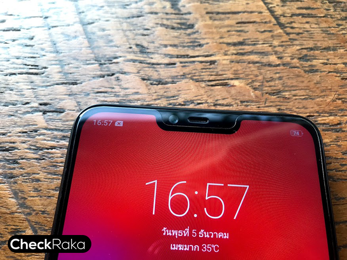เหนือหน้าจอขึ้นไปตรงรอยแหว่ง (Notch screen) มีกล้องหน้าความละเอียด 5 ล้านพิกเซล (F/2.2), ลำโพงสนทนา และ Proximity Sensor