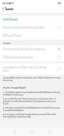 Realme C1 มีระบบปลดล็อกหน้าจอด้วยรหัสผ่าน และปลดล็อกหน้าจอด้วยใบหน้ามาให้ แต่น่าเสียดายที่ไม่มีสแกนลายนิ้วมือมาให้ด้วย