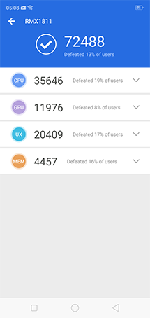 - ทดสอบด้วยแอปพลิเคชั่น AnTuTu Benchmark ได้คะแนน 72,488 คะแนน