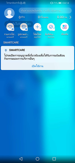 ในหน้า Home เมื่อปัดไปทางด้านซ้าย จะเป็นเมนู HiBoard โดยเป็นเมนูที่ให้ข้อมูลข่าวสาร รวมไปถึงการแจ้งเตือนต่าง ๆ และทางลัดสำหรับการใช้งานแบบเร่งด่วน ซึ่งส่วนนี้เราสามารถกำหนดเองได้ด้วย