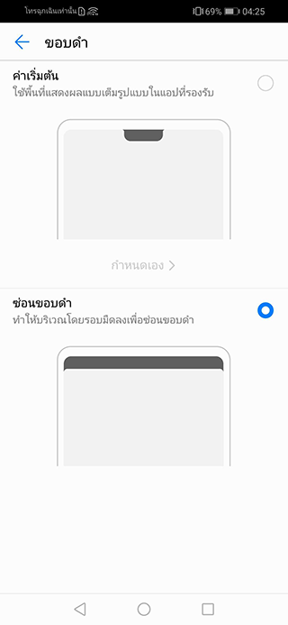 สามารถตั้งค่า Notch Screen ได้ สำหรับบางคนที่อาจจะรู้สึกว่าเกะกะสายตาและไม่ค่อยจะชื่นชอบหน้าจอแบบมีรอยแหว่งมากนัก ก็เข้าไปปิดการใช้งานได้ที่การตั้งค่าการแสดงผล