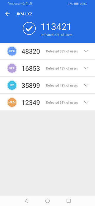 - ทดสอบด้วยแอปฯ AnTuTu Benchmark ได้คะแนน 113,421 คะแนน