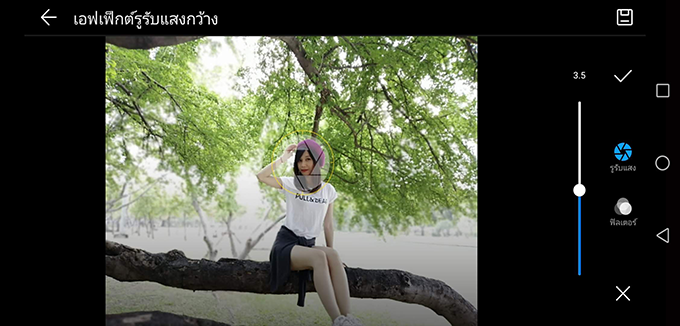 ภาพถ่ายกล้องหน้าในโหมด Beauty โดยมีให้เลือกตั้งแต่ระดับ 0 - 10