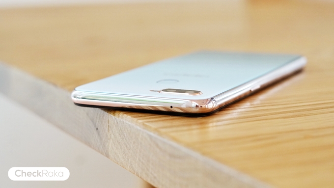 OPPO F9 Jade Green Limited Edition สีใหม่ล่าสุด ไล่เฉดสีขาวมุกและสีเขียวหยก หรูหราดูพรีเมี่ยมมากๆ มองดูใกล้ๆ จะมีละอองสีทองเล็กๆ สวยงามเหมือนผงไข่มุก ตัดกับขอบเครื่องสีทองโครเมี่ยมแวววาว บริเวณกล้อง และสแกนลายนิ้วมือ ตัดขอบสีทอง รวมทั้งโลโก้ OPPO ก็เป็นสีทองอีกด้วย ในส่วนของกล้องมาพร้อมกล้องคู่ความละเอียด 16MP F1.8 + 2MP F2.4 (รองรับ AI technology) และไฟแฟลช LED