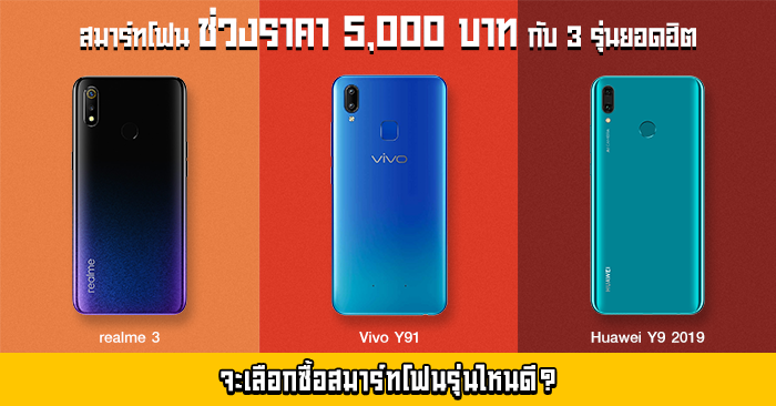 รีวิว สมาร์ทโฟนช่วงราคา 5,000 บาท กับรุ่นยอดฮิต realme 3, Vivo Y91 และ Huawei Y9 2019