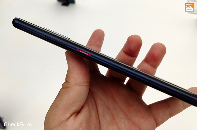 ด้านข้างตัวเครื่อง ปุ่มกดเปิด-ปิดตัวเครื่อง (ปุ่ม Power) เปลี่ยนสีเป็นสีแดง พร้อมแถบสีเงินบนปุ่ม