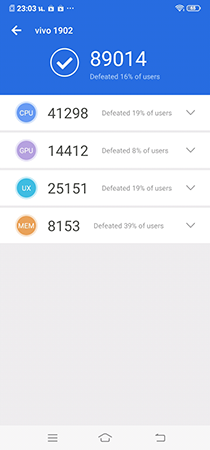 ทดสอบด้วยแอปฯ AnTuTu Benchmark ได้คะแนน 89,014 คะแนน ทดสอบด้วยแอปฯ GeekBench 4 ได้คะแนน Single Core 910 และ Multi Core 4,239 คะแนน ทดสอบด้วยแอปฯ MultiTouch Tester รองรับการสัมผัสสูงสุด 3 จุด การจับสัญญาณทดสอบด้วย GPS Tester จับสัญญาณได้ค่อนข้างดี (สังเกตจากแถบเขียว) ในขณะที่ด้านความบันเทิง เรื่องของระบบเสียงและลำโพง มีการใส่ระบบปรับแต่งเสียงอย่าง Deep Field มาให้ด้วย ทำให้เลือกปรับมิติเสียงที่จะรับฟังได้หลากหลายรูปแบบ รวมทั้งยังใส่วิทยุ FM มาให้ ซึ่งไม่ค่อยได้เห็นบนสมาร์ทโฟนในยุคปัจจุบันแล้ว แต่ผมชอบนะ เพราะเวลาออกต่างจังหวัดบางครั้งวิทยุก็ช่วยให้เรามีอะไรฟังในพื้นที่ที่สัญญาณอินเทอร์เน็ตไม่มีหรือเน็ตหมดได้ และสิ่งหนึ่งที่ต้องขอชมวีโว่เลยคือ ไม่ว่าจะเป็นมือถือรุ่นบนหรือรุ่นล่างระบบเสียงของสมาร์ทโฟนวีโว่ ยังคงให้มิติเสียงและอรรถรสในการฟังที่รู้สึกสนุกหรืออินไปกับเพลง คอนเทนท์วีดีโอที่เราดูอยู่ ถึงแม้จะเป็นสมาร์ทโฟนราคาไม่กี่พันก็ตาม