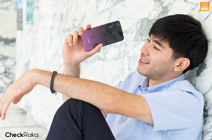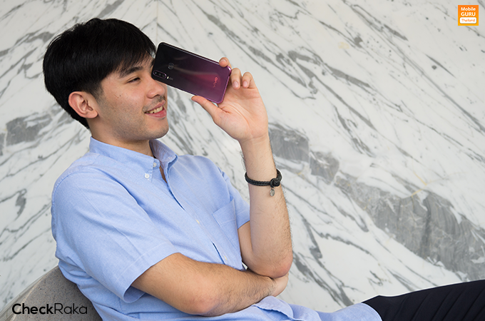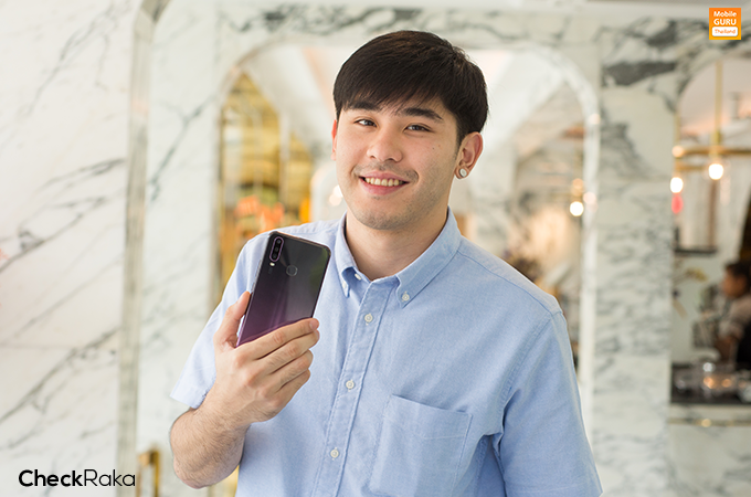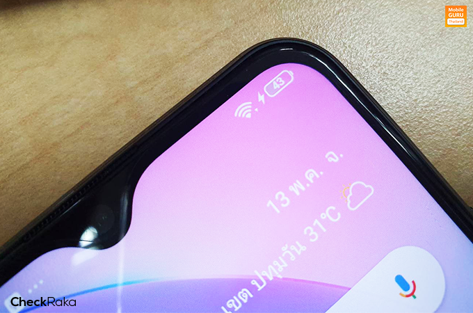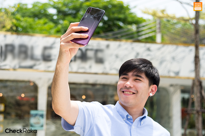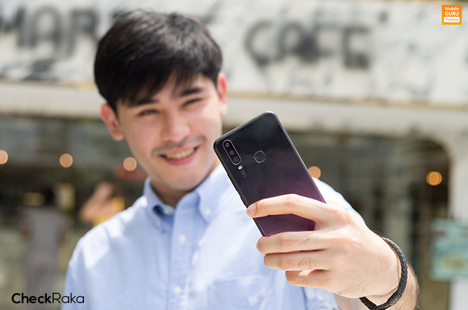 เหนือหน้าจอขึ้นไป มีกล้องหน้าความละเอียด 20 ล้านพิกเซล (F2.0) พร้อม AI Beauty