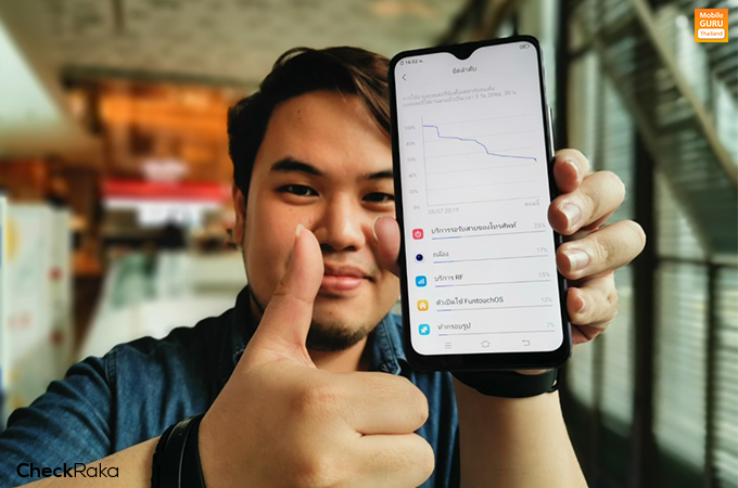 ส่วนการใช้งานจริงใน 1 วัน พอได้เครื่องปุ๊ป ก็กลับบ้านไปชาร์จให้เต็ม 100% เลยทันที พอตื่นเช้ามาก็เริ่มต้นใช้งานทั่วไปตามไลฟ์สไตล์ปกติที่ทำทุกวัน เริ่มจากเล่นโซเชียลระหว่างเดินทางมาทำงาน ดู Youtube สลับบ้างช่วงรอรถไฟฟ้า ปิดท้ายด้วยฟังเพลงออนไลน์จนถึงที่ทำงาน กลางวันช่วงพักก็มีเล่น ROV 2-3 เกม ซึ่งตลอดทั้งวันมีต่อ WiFi เอาไว้ด้วย พอตกเย็นมาดูแบตเตอรี่อีกทีเหลือแบตฯ 43% เลยนะ!! ถือว่าอึดมากเลย