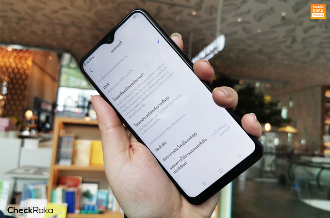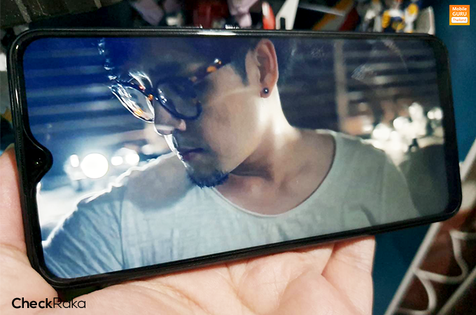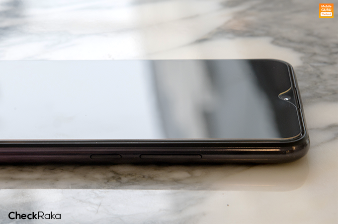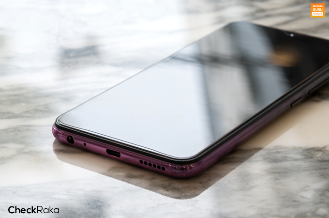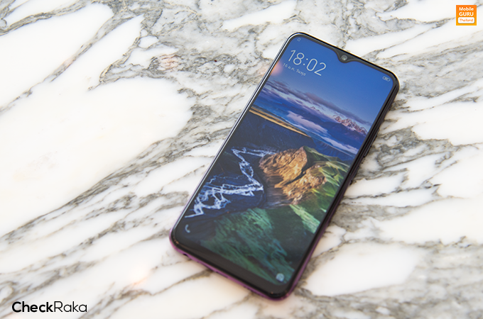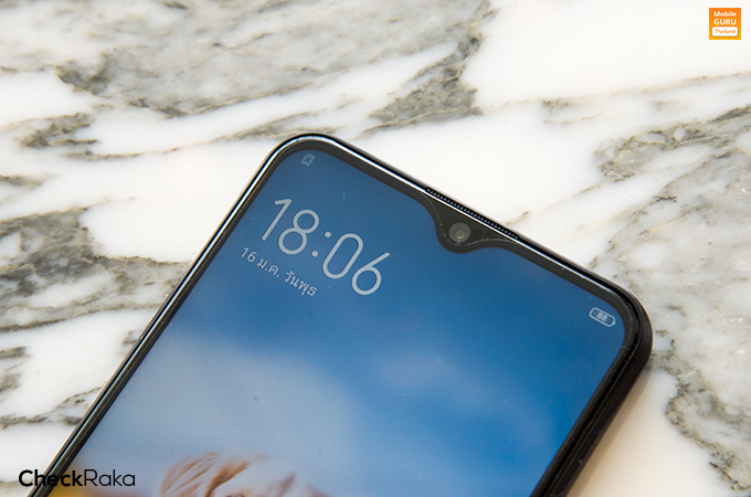 ด้านหน้าของตัวเครื่อง มาพร้อมหน้าจอแสดงผล Halo FullView ขนาด 6.35 นิ้ว ความละเอียด 1544x720 พิกเซล (HD+) อัตราส่วนการแสดงผลอยู่ที่ 19.3 : 9 และมีพื้นที่หน้าจอให้ใช้งานถึง 89%
