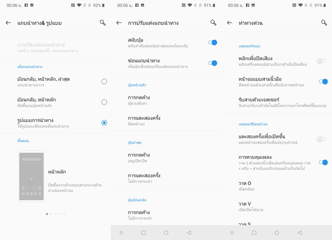 แถบนำทางด้านล่างสามารถปรับแต่งได้ รวมทั้งเลือกใช้ในรูปแบบ Gesture การปัดนิ้วแทนได้นะครับ รวมทั้งมีคำสั่งลัดต่างๆมาให้ใช้งานเพียบ งานนี้นอกจากเรียบสวย ดูพรีเมี่ยม แถมลื่นไหลมากๆ แล้วยังใช้งานสนุกมากด้วยนะครับ
