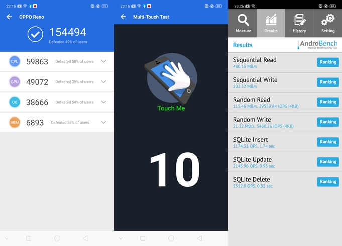 - ทดสอบด้วยแอปพลิเคชั่น AndroBench ทำความเร็วในการอ่านอยู่ที่ 480.15 MB/s (UFS 2.0 Storage)