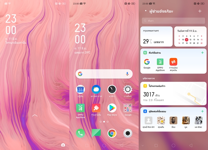 OPPO Reno ทำงานบน Android 9.0 Pie ครอบทับด้วย ColorOS 6 มาพร้อมสเปคที่น่าสนใจ Qualcomm Snapdragon 710, GPU Adreno 616, RAM 6GB, ROM 256GB รองรับ MicroSD อย่างที่ทราบกันครับว่า ColorOS 6 ออกแบบได้เรียบหรูมากๆ หน้าตา UI ดูสวยงามและสะอาดตา แต่ก็แฝงมาด้วยลูกเล่นที่จัดจ้านและครบถ้วน ไม่ว่าจะเป็นระบบผู้ช่วยอัจฉริยะ Smart Assistant, Smart Gesture ที่หลากหลายและลื่นไหล, ฟีเจอร์โคลนแอปพลิเคชั่น สามารถใช้งานแอปพลิเคชั่นโซเชียลยอดนิยมได้พร้อมกัน 2 แอคเคาท์ ในสมาร์ทโฟนเครื่องเดียว, App Split-Screen เป็นการแบ่งหน้าจอเป็น 2 ส่วนสามารถทำงานได้หลายๆอย่างในเวลาเดียวกัน ทั้งหมดนี้มีมาให้ครบถ้วน และทำงานได้อย่างรวดเร็วลื่นไหล สมกับเป็นสมาร์ทโฟนระดับพรีเมี่ยมจริงๆ ในราคาที่เข้าถึงได้ง่าย ยิ่งใช้งานบนหน้าจอไร้ขอบสมบูรณ์แบบ Panoramic full-screen ยิ่งมอบประสบการณ์การใช้งานที่น่าประทับใจมากจริงๆ