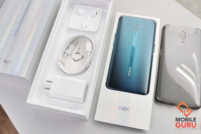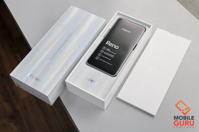 OPPO Reno มาพร้อมกล่องที่ดูหรูหราเหมือนกับรุ่นพี่อย่าง OPPO Reno 10x Zoom ภายในกล่องจะมีอุปกรณ์ดังต่อไปนี้