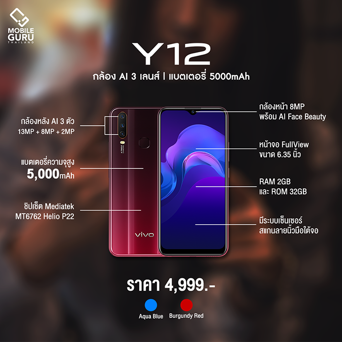 รีวิว Vivo Y12 สมาร์ทโฟนดีไซน์สวย กล้อง AI 3 ตัว พร้อมแบตเตอรี่สุดอึด 5,000 mAh
