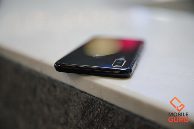 Vivo Y12 จะมีด้วยกัน 2 สี ซึ่งดีไซน์จะแตกต่างกันครับ Burgundy Red เป็นเป็นการไล่โทน ส่วนสี Aqua Blue ด้านหลังจะมีลวดลายแบบปริซึ่มสวยงาม สำหรับสีที่เรานำมารีวิวจะเป็น Burgundy Red ซึ่งผมว่าดูสวยมากๆ เลยครับ ดูพรีเมี่ยมเกินราคา ด้านหลังมาพร้อม AI Triple Camera กล้อง 3 ตัวประกอบด้วยความละเอียด 13MP F2.2 PDAF + 8MP F2.2 16 มม. (Ultrawide) + 2MP F2.4 Depth Sensor และไฟแฟลช LED ถัดมาตรงกลางจะเป็นเซ็นเซอร์สแกนลายนิ้วมือ ความแม่นยำและความรวดเร็วทำได้ดีมากครับ