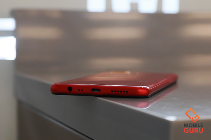 ด้านล่างตัวเครื่อง มีพอร์ตเชื่อมต่อ MicroUSB, ลำโพงเสียง, รูเสียบชุดหูฟัง 3.5 มิลลิเมตร และลำโพงสนทนา