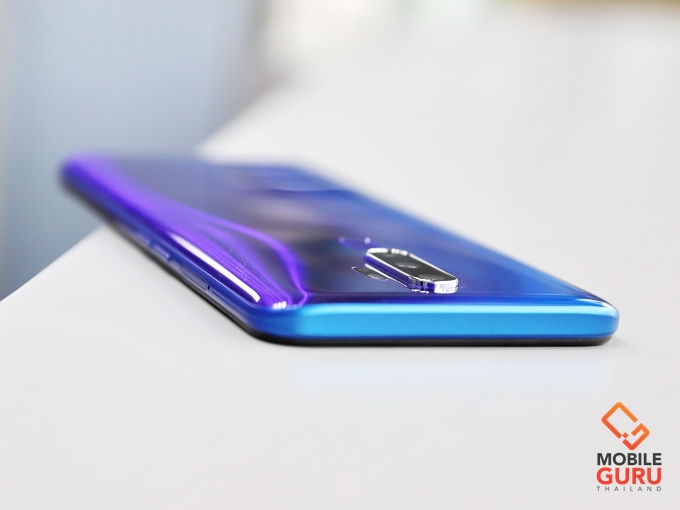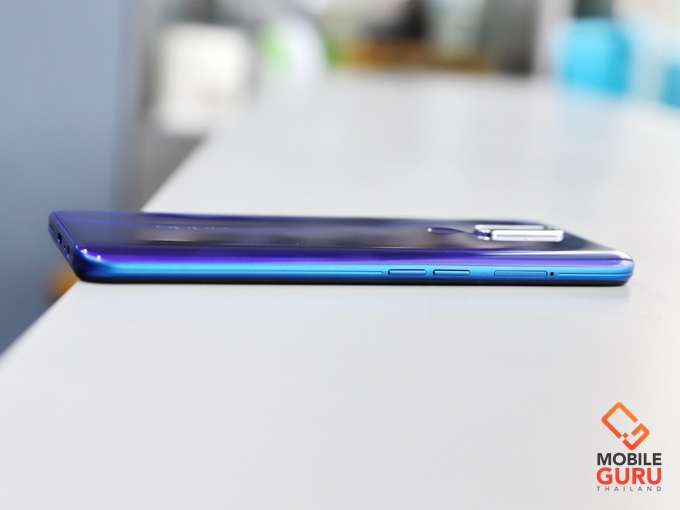 ด้านข้างมีการออกแบบกันลื่น ด้านซ้ายมีถาดใส่ซิมซึ่งรุ่นนี้จะรองรับในรูปแบบ Triple Slot สามารถใส่ได้ทั้ง ซิม 1 ซิม 2 และ MicroSD (256GB) ได้พร้อมๆกัน ไม่จำเป็นต้องเลือกครับ ถัดลงมาเป็นปุ่มปรับระดับเสียง ส่วนด้านขวาจะเป็นปุ่ม Power