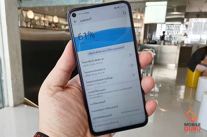 ตอนเห็นสเปคครั้งแรกก็คิดเหมือนกันว่า Huawei ใส่แบตเตอรี่ขนาด 3750 mAh มาให้บน Nova 5T มันจะเพียงพอต่อการใช้งานในหนึ่งวันจริงหรือไม่? ถึงแม้ว่าจะรองรับชาร์จไว 22.5W ก็ตาม ซึ่งพอได้เครื่องมาแล้วก็ลองทดสอบใช้งานจริงแบบทั่วไป เล่นโซเชียล ฟังเพลงสตรีมมิ่ง เล่นเกมบ้างช่วงพักกลางวัน มีโทรเข้าออกคุยสายไม่นาน