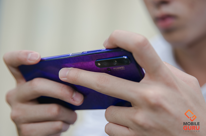 มากันที่เรื่องราวของเกมกันบ้างครับ สำหรับการเล่นเกมบน Huawei Nova 5T ให้การตอบสนอง รวมถึงอรรถรสในการเล่นเกมตั้งแต่เกมกราฟฟิกเบาๆ ไปจนถึงหนักๆ ได้ไม่น้อยหน้าสมาร์ทโฟนระดับสองหมื่นเลยก็ว่าได้ครับ ด้วยชิปประมวลผล CPU Hisilicon Kirin 980, GPU Mali G76 ที่ใช้งานอยู่บน Huawei P30 เช่นเดียวกัน จับคู่ทำงานร่วมกับ RAM 8GB และ ROM 128GB แบบ UFS 2.1 ทำให้การเข้าเกมหรือการโหลดเกมทำได้รวดเร็วเกินราคาเลยทีเดียว แต่มีจุดหนึ่งที่ผมรู้สึกหงุดหงิดเวลาถือเล่นเกมคือ ดีไซน์ของตำแหน่งกล้องที่ครั้งนี้แถบมันยาวขึ้น เพราะมีกล้อง 4 ตัว ทำให้เวลาเราถือเล่นเกมอุ้งมือมักจะไปสัมผัสโดนทีกระจกของกล้อง และอาจทำให้เป็นรอยคราบได้นั่นเอง