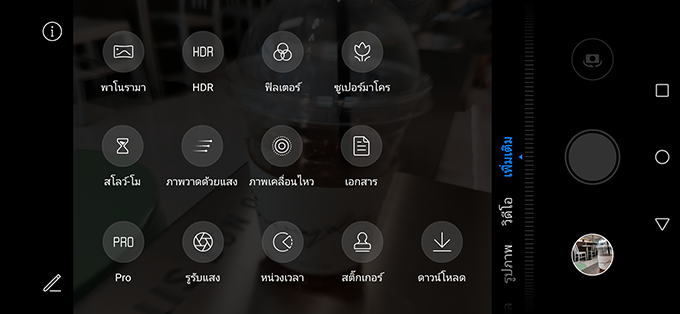 หน้าเมนูกล้องถ่ายรูป