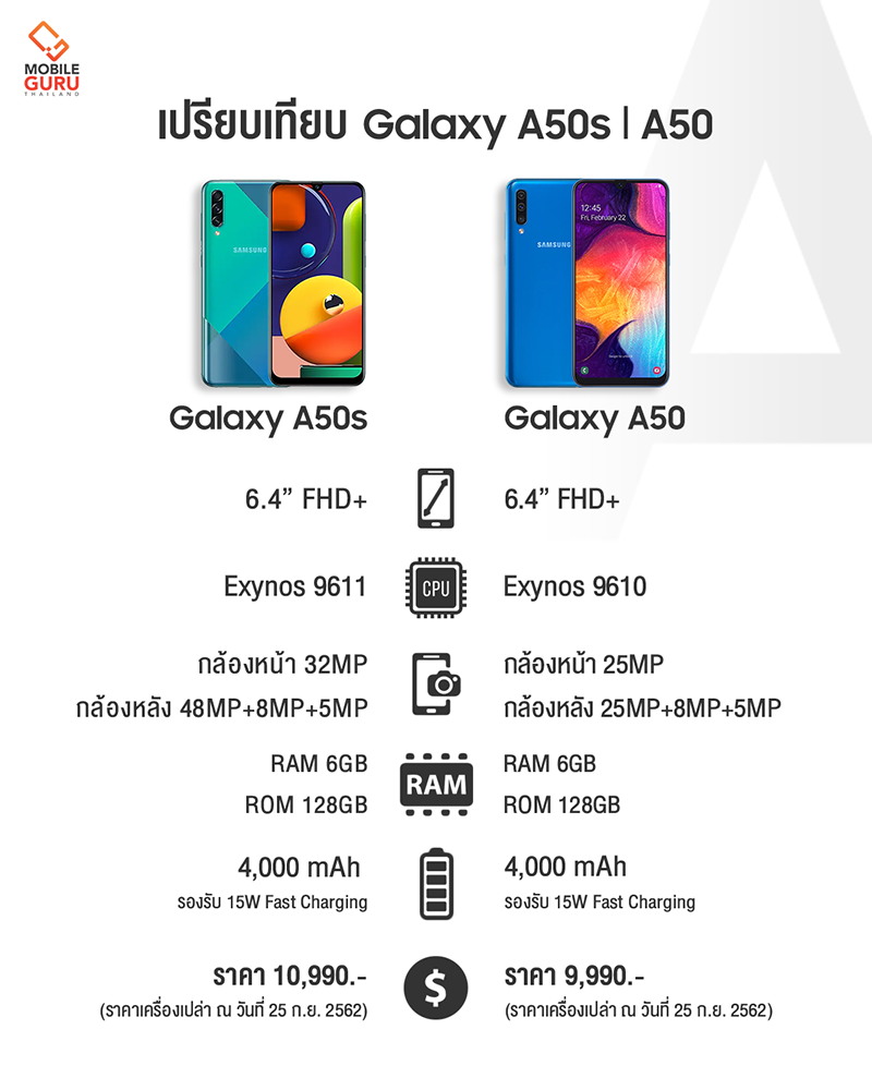 อย่างที่รู้กันว่า Samsung Galaxy A50s นั้น เป็นสมาร์ทโฟรนรุ่นอัปเกรดจาก Samsung Galaxy A50 ที่ราคาต่างกันอยู่นิดหน่อย ซึ่งในส่วนของสเปกนั้นจริง ๆ แล้วก็ไม่ได้ต่างกันมากนัก แต่ก็มีจุดต่างอยู่ สำหรับคนที่สงสัยหรือลังเลว่ารุ่นไหนจะตอบโจทย์มากกว่า ลองตามมาดูกันได้เลย