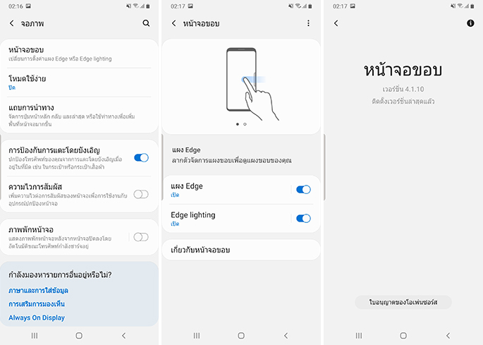 จากหน้า Home หรือหน้าการใช้งานอื่น ๆ สามารถปัดบริเวณขอบหน้าจอ เพื่อเข้าถึงส่วนต่าง ๆ ตามที่เราตั้งค่าไว้ได้อย่างรวดเร็วมากขึ้น โดยสามารถเปลี่ยนการตั้งค่าแผง Edge หรือ Edge Lighting ได้ตามความต้องการ และยังสามารถปรับตั้งค่าต่าง ๆ ของของแผง Edge แบบ Apps Edge ได้ง่าย ๆ แค่กดแก้ไข แล้วเลือกลบ เพิ่มแอปฯ หรือฟีเจอร์การใช้งานที่ต้องการได้เลย