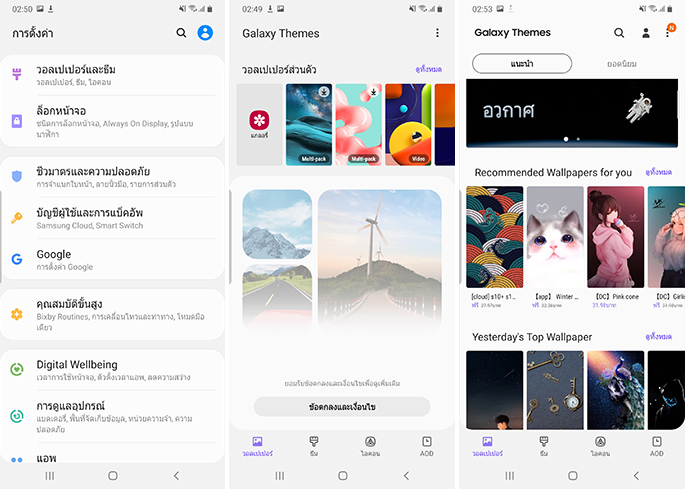 Galaxy Themes เป็นหน้าที่รวบรวมธีม, วอลเปเปอร์, และไอคอนต่าง ๆ ไว้อย่างครบถ้วน มีให้เลือกทั้งแบบฟรีและแบบเสียเงิน