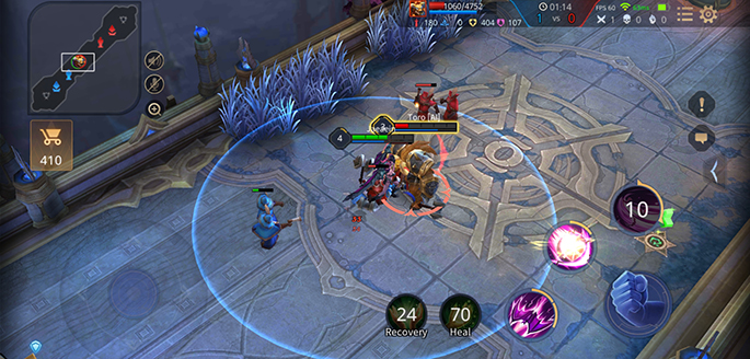 RoV สามารถเปิดภาพแบบ HD และเปิดค่าเฟรมเรทระดับสูงได้ ในระหว่างเล่นเกม เฟรมเรทจะวิ่งอยู่ที่ 59 - 60 FPS เล่นได้ลื่นไหล แอบมีหน่วงบ้างบางจังหวะ แต่การตอบสนองดี ประทับใจ อันนี้ให้ผ่าน!