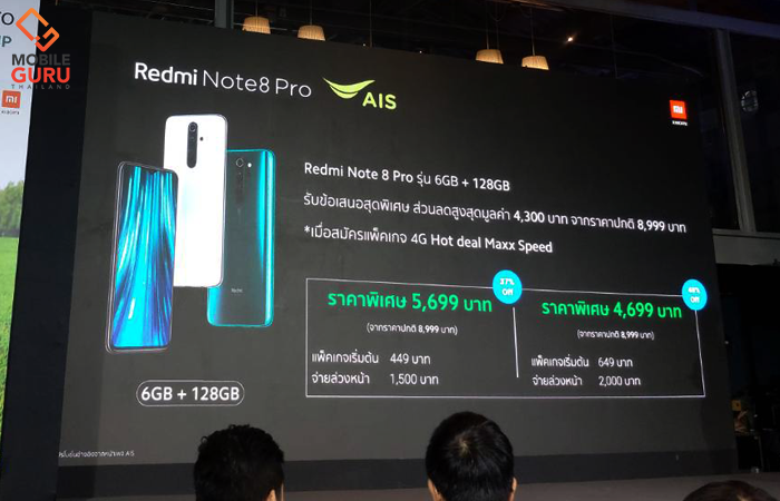 ข้อเสนอสุดพิเศษ! ซื้อสมาร์ทโฟน Redmi Note 8 Pro (รุ่น 6GB + 128GB) กับ เอไอเอส ราคาพิเศษเพียง 5,699 บาท (จากราคาปกติ 8,999 บาท) เมื่อซื้อเครื่องพร้อมสมัครแพ็คเกจ 4G Hot Deal Maxx Speed ราคาเริ่มต้น 499 บาท และจ่ายค่าบริการล่วงหน้า 1,500 บาท หรือซื้อเครื่องในราคาพิเศษ 4,699 บาท (จากราคาปกติ 8,999 บาท) เมื่อซื้อเครื่องพร้อมสมัครแพ็คเกจเริ่มต้น 649 บาท และจ่ายค่าบริการล่วงหน้า 2,000 บาท