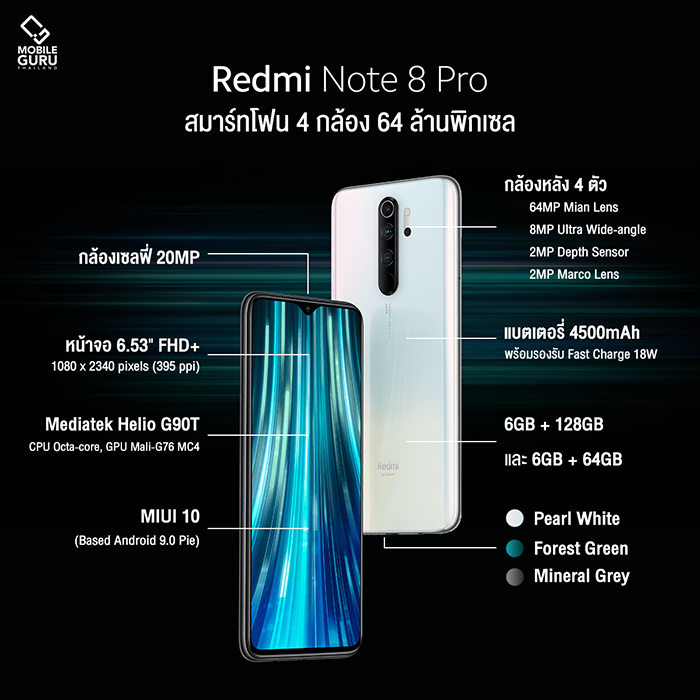 Xiaomi Redmi Note 8 Pro มาพร้อมรายละเอียดสเปคดังต่อไปนี้