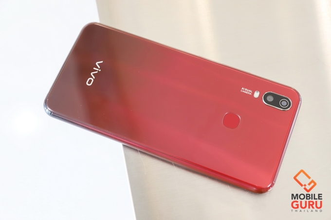 Vivo Y11 มาพร้อมดีไซน์ที่ดูเรียบหรูสวยงาม หน้าจอ IPS LCD มาพร้อม Halo FullView Display ขนาด 6.35 นิ้ว ความละเอียด HD+ 720 x 1544 pixels (268 ppi) สีสันดูไม่เลว และสู้แสงได้พอสมควรครับ กล้องหน้าความละเอียด 8MP F1.8 ติดกันฟิล์มกันรอยมาให้เรียบร้อย ฝาหลังและขอบตัวเครื่องออกแบบไล่โทนสีแบบ Gradient ทั้งเครื่องเลยครับ ดูมีมิติและสวยงามมากๆ ด้านหลังมีกล้องคู่ความละเอียด 13MP F2.2 + 2MP F2.4 อยู่บนกรอบโครเมี่ยม และไฟแฟลช LED ด้านหลังมีเซ็นเซอร์สแกนลายนิ้วมือ