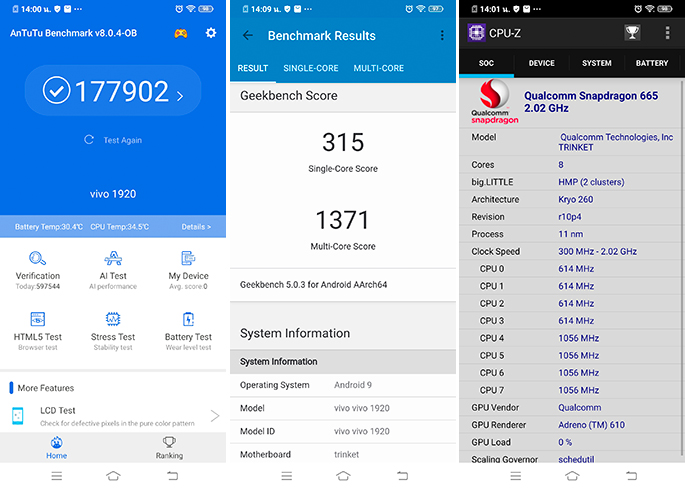 - ทดสอบด้วยแอปฯ GeekBench 5 ได้คะแนน Single Core 315 คะแนน และ Multi Core 1,371 คะแนน
