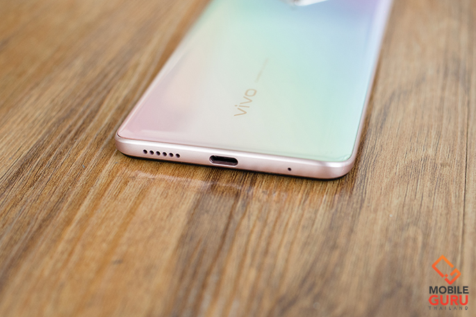 Vivo S1 Pro มาพร้อมดีไซน์ตัวเครื่องที่แตกต่างจากที่เคย เมื่อแรกสัมผัสรู้สึกได้ถึงความเพรียวบางและน้ำหนักที่ค่อนข้างเบาของตัวเครื่อง ผิวเรียบ เป็นมัน แต่ไม่ลื่น จับถือได้ถนัดมือ พร้อมฝาหลังแบบใหม่ที่ทางแบรนด์บอกว่าได้รับแรงบันดาลใจมาจากเครื่องประดับและสถาปัตยกรรมพระราชวังที่หรูหรา มีให้เลือกด้วยกัน 2 สี คือ สีดำ Knight Black และสีขาว Fancy Sky ซึ่งเป็นสีที่เราได้รับมารีวิวในครั้งนี้ ก็ต้องยอมรับว่าเป็นสีที่ดูดีมีชาติตระกูล มีเสน่ห์น่าหลงใหลเอามาก ๆ เลยค่ะ เพราะเป็นสีขาวประกายมุก เมื่อโดนแสงจะเห็นเหลือบสีชมพูแดงและสีทอง เรียกว่าออกแบบมาให้เล่นกับมิติของแสงเงาได้อย่างสวยงามลงตัวมาก ๆ