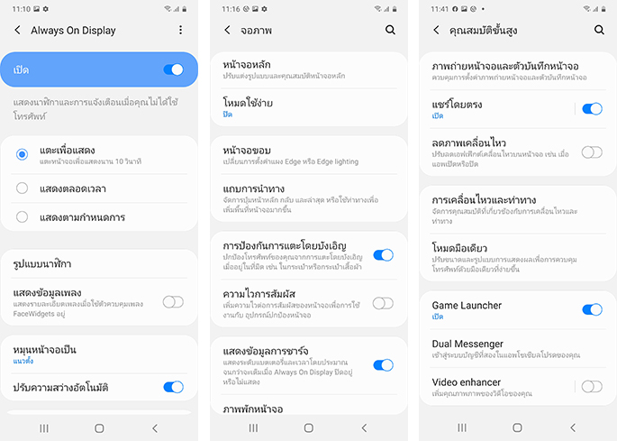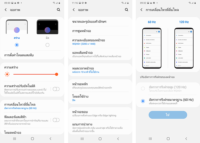 ในส่วนของฟีเจอร์เด่น ๆ เช่น การตั้งค่าหน้าจอรีเฟรชเรต 120Hz เพื่อความไหลลื่นและนุ่มนวลของหน้าจอก็มีมาให้เหมือนกับในสมาร์ทโฟนรุ่นพี่ ซึ่งในการใช้งานเบื้องต้น หน้าจอจะถูกเซ็ตค่าไว้ที่ 60Hz ซึ่งหากต้องการปรับเป็น 120Hz ก็สามารถเลือกปรับได้ในการตั้งค่า