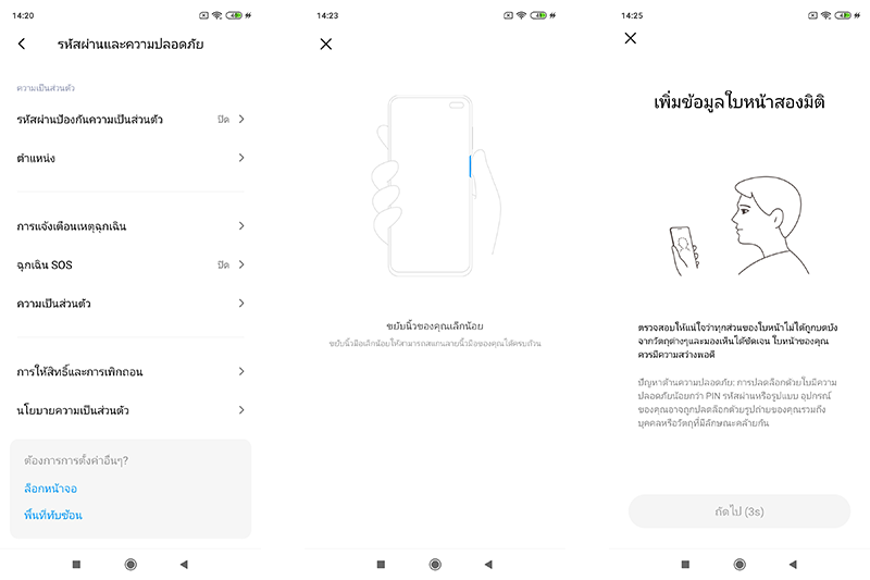 สำหรับด้านความปลอดภัยต่อข้อมูลบนเครื่อง Redmi Note 9s ติดตั้งระบบสแกนลายนิ้วมือ, ระบบปลดล็อคด้วยใบหน้า และระบบความปลอดภัยพื้นฐานอย่าง Password, Pin code และ Pattern Lock มาให้เหมือนสมาร์ทโฟนแอนดรอยด์ทั่วไปเลยครับ อย่างน้อยก็มีการป้องกันระดับหนึ่งช่วยอุ่นใจได้อยู่ไม่น้อย