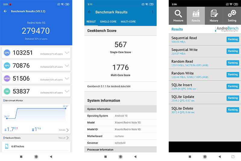 - ทดสอบด้วย Antutu Benchmark ได้คะแนนทดสอบรวม 279,470 คะแนน