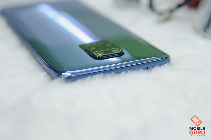 ด้านหลังตัวเครื่อง ฝาหลังใช้วัสดุเป็นกระจกนะครับ ซึ่งเป็นกระจก Corning Gorilla Glass 5 แบบเดียวกับด้านหน้าเลย พร้อมกับใช้เทคนิคการลงสีแบบพิเศษมากกว่า 20 ขั้นตอนด้วย ทำให้ดูมีความหรูหราสวยงาม นอกจากนี้ยังใส่ความพิเศษของรุ่นนี้ที่ทำให้เป็นจุดแตกต่างจุดเดียวจากรุ่นปกติคือ สัญลักษณ์ MFF 2020 ที่สลักมาบนฝาหลังตัวเครื่องเลย