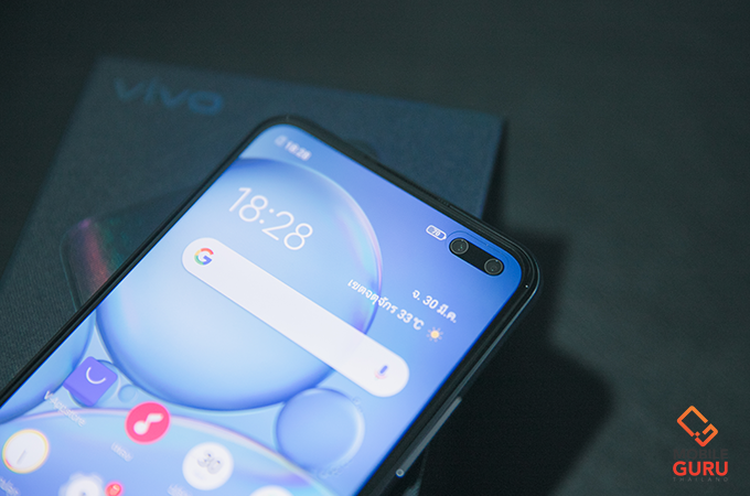 หน้าจอแสดงผล Super AMOLED Ultra O Screen ขนาด 6.44 นิ้ว ความละเอียดระดับ FHD+ CPU Snapdragon 712 GPU Adreno 616 RAM 8GB ROM 128GB Support MicroSD Card (SDXC) กล้องถ่ายรูป Quad camera ความละเอียด 48+8+2+2 ล้านพิกเซล (Main F1.8 + Ultrawide F2.2 + Bokeh F2.4 + Macro F2.4) กล้องหน้าคู่ความละเอียด 32+8 ล้านพิกเซล (Main F2.1 + Ultrawide F2.3) Android 10 with FunTouch OS 10 WiFi 802.11 a/b/g/n Dual Band Bluetooth 5.0 แบตเตอรี่ 4500 mAh (Vivo Flash Charge 2.0, 33W) อุปกรณ์ภายในกล่อง