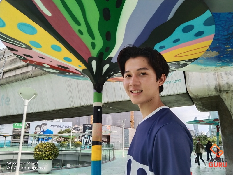 Vivo Y50 เรื่องกล้องไม่ธรรมดาเลยครับ มาพร้อมกล้องหน้า Ultra O Camera ความละเอียด 16MP F2.0 (wide) กล้องหลังรูปทรงสี่เหลี่ยม 4 เลนส์ ความละเอียด 13MP F2.2 (wide), PDAF + 8MP F2.2, 13 มม. (ultrawide) + 2MP F2.4 (macro) + 2MP F2.4 (depth) ในส่วนการบันทึกวีดีโอ กล้องหน้ารองรับ Full HD 1080P 30FPS และกล้องหลังรองรับ 4K 30FPS จากการทดสอบ กล้องของ Vivo Y50 ถ่ายภาพได้สวยครับ รองรับทั้งภาพ 1x, 2x, Super Wide-angle และ Macro ส่วนเรื่อง Selfie ทำได้ยอดเยี่ยม รองรับการละลายหลังได้สวยไม่เบาเลย แม้ว่า Vivo Y50 จะเป็นสมาร์ทโฟนระดับกลาง แต่เรื่องกล้องวางใจได้เลยนะครับ เรามาชมตัวอย่างภาพถ่ายจากสมาร์ทโฟนรุ่นนี้กันได้เลย