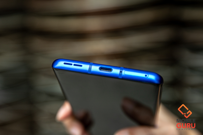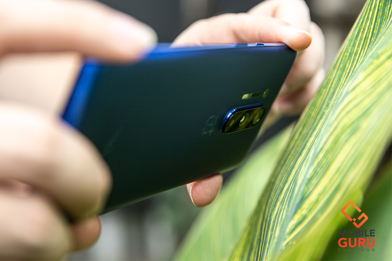 ด้านหลังตัวเครื่อง ครั้งนี้ฝาหลังมีการเคลือบสารแบบด้าน ทำให้เวลาถือจับอาจเป็นรอยคราบนิ้วมือง่ายหน่อยนะครับ แต่แลกกลับความสวยแบบ Matte ที่ผมค่อนข้างชอบเลย ในขณะที่กล้องถ่ายรูปครั้งนี้ใช้แบบ Quad camera ประกอบด้วยกล้องหลักความละเอียด 48 MP, กล้องมุมกว้างความละเอียด 48 MP, กล้อง Telephoto ความละเอียด 8 MP และกล้อง Color Filter Lens ความละเอียด 5 MP ทั้งหมดถูกมัดรวมมาพร้อมกับไฟแฟลช Dual LED ติดตั้งมาให้บริเวณตรงกลางของฝาหลังของเครื่องตามแนวทางออกแบบสมมาตร