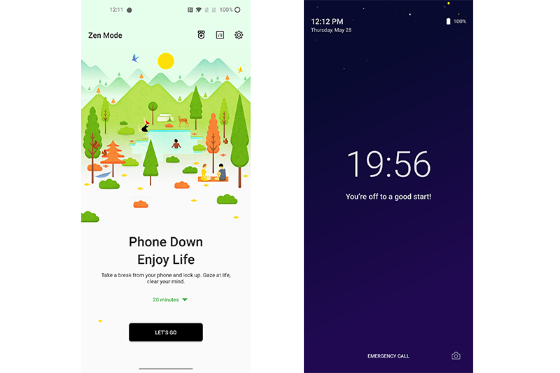 อีกหนึ่งฟีเจอร์ที่อยากแนะนำมากๆ ครับกับฟีเจอร์ทดสอบการติดโทรศัพท์มือถือของตัวเอง Zen mode ที่จริงโหมดนี้มีไว้เพื่อส่งเสริมให้ผู้ใช้มีช่วงเวลาพักสายตาจากหน้าจอมือถือเพื่อไปทำกิจกรรมอย่างอื่นในระหว่างวัน ซึ่งรูปแบบการใช้งานก็คือ เมื่อเข้าสู่โหมด Zen แล้วตัวเครื่องจะแสดงเวลาที่กำหนดแบบนับถอยหลังพร้อมกับล็อคทุกอย่างบนตัวเครื่อง เราจะไม่สามารถกดปุ่มหรือสั่งออกจากโหมดนี้ หรือปิดเครื่องใดๆ ได้เลยครับ รวมถึงตัดขาดจากโลกออนไลน์ทั้งหมดภายในระยะเวลาที่กำหนดโดยขั้นต่ำอยู่ที่ 20 นาที เรียกว่าจิตใจไม่เข้มแข็งพออย่าได้ลองเล่นเลยนะ!