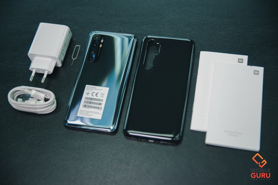 Xiaomi Mi Note 10 Lite เป็นสมาร์ทโฟนที่พรีเมี่ยมในราคาเบาๆ พรีเมี่ยมตั้งแต่กล่องถึงข้างในเลย ในกล่องประกอบด้วย ตัวเครื่อง, อะแดปเตอร์, สาย USB Type-C, เข็มจิ้มซิม, คู่มือ, เคส (ไม่มีหูฟังมาให้)
