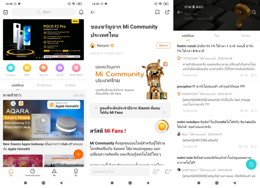 Mi Community เป็นแหล่งรวมคนรัก Xiaomi ที่จะเข้ามาพูดคุย และโพสต์ความชอบต่างๆ ที่เกี่ยวกับ Mi แบ่งปันกัน ซึ่งต้องขอชมเลยครับ ว่าทำออกมาได้ดีมากและประสบความสำเร็จที่สุดในแบรนด์มือถือตอนนี้เลย มีแฟนๆ เป็นจำนวนมากอยู่ในนั้น และเต็มไปด้วยรีวิว คลิป ที่มีประโยชน์มากมายสำหรับชาว Mi โดยเฉพาะ แถมทางแบรนด์ยังลงมาดูแลอย่างเต็มที่ เป็นสังคมแห่งการแบ่งปันที่น่าสนใจจริงๆ และมีให้ใช้งานทั้งบนแอปพลิเคชั่น และบน Browser สามารถใช้งานได้ทั้งสมาร์ทโฟน และโน๊ตบุ๊ค และมีในส่วนของ Mi Theme มาให้ดาวน์โหลดกันอย่างจุใจ มีทั้งแบบฟรี และแบบพรีเมี่ยม ซึ่งไม่ต้องใช้เงินซื้อครับ แต่แลกกับการรับชมโฆษณาในเวลาที่กำหนดแทน ผมว่าก็แฟร์ดีนะ